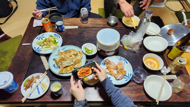 続く納会では、餃子や鍋等各自の持ち寄りつまみやお酒が提供され、楽しい時間が過ぎていきます。