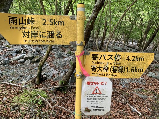 登山道は寄沢を5回ほど徒渉するが、徒渉点には標識がばっちしある。標識を壊さないでとの注意があるが、そんなにボロボロになるまで誰が破壊したのだろうか?