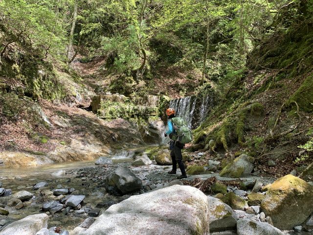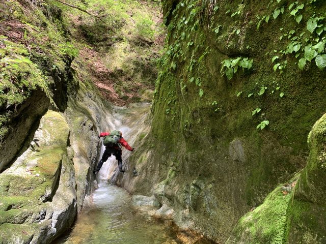 その先、しばらくの所に現れる3mスロープ滝はオポジションで登れて楽しい。