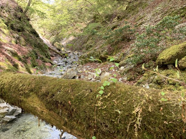 寄木大橋(7:56)-雨山峠(10:08)ーユーシンロッジ分岐先(11:15-37)ー鉄砲沢出合(11:58)ーco900m二俣(13:34)ー登山道(15:15)ー玄倉林道(15:51)ー鉄砲沢出合(16:20)ーユーシンロッジ(16:51)
