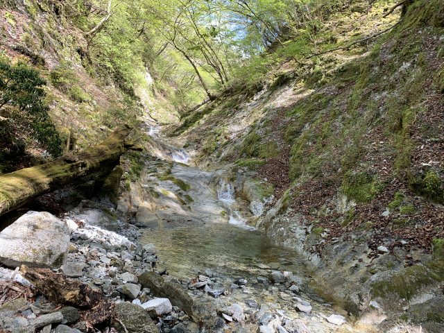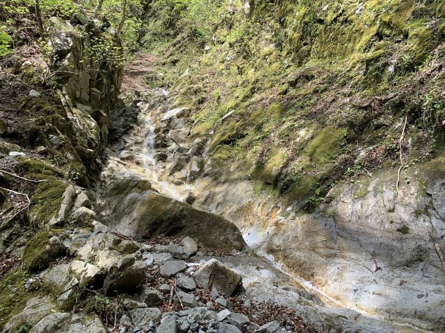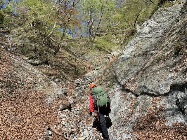 水が涸れてガレとなる。co1040m、左を詰める。