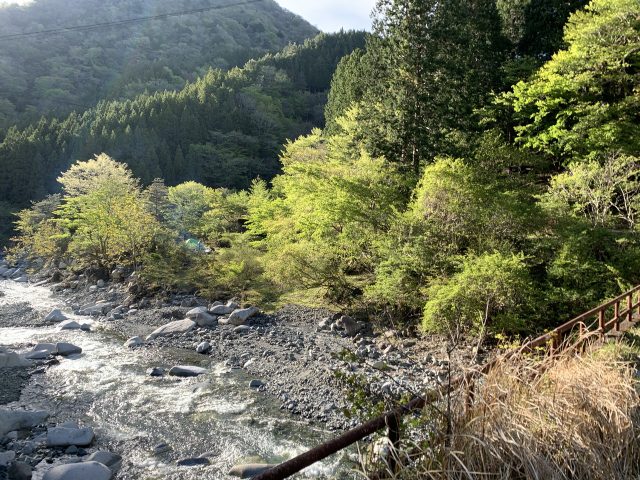 今年のGWは、再び緊急事態宣言下。当初南紀の沢に行く予定であったが、和歌山県は病床使用率が90%を越えているようで厳しい警戒態勢を敷いているようで行きにくくなってしまった。そこで近場で泊りでということで、玄倉林道不通で入りにくくなっているユーシンロッジ周辺に泊まって近辺の沢を遡行する計画に変更した。天気も3日間安定していそうな5/2-4の日程とした。前日かなり雨が降ったので川は増水気味だが、天気は上々である。同じことを考える人が多かったのか寄木大橋の駐車スペースは満杯で、橋の上に溢れ出していた。