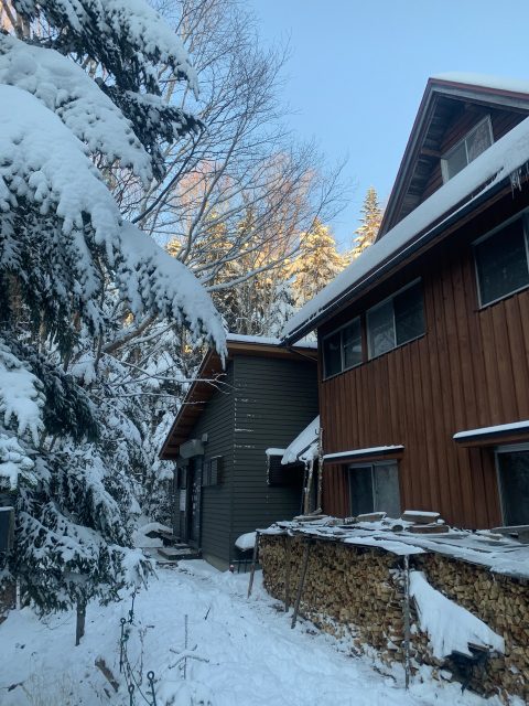 斜面にある木々は真っ白。