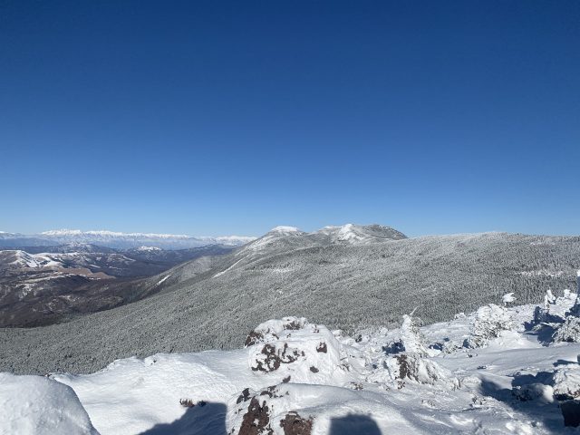 同じ地点から蓼科山方面。縞枯山はのっぺりしている。