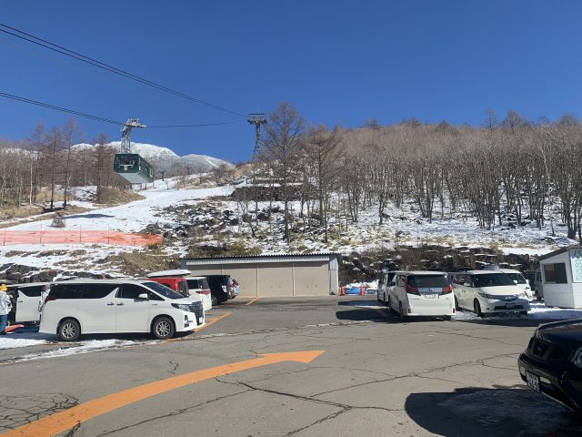 山頂駅到着。事前情報ではロープウェイは休止中のはずだが動いていた。スキーヤーやボーダーが登ってきていて既に下界という感じ。