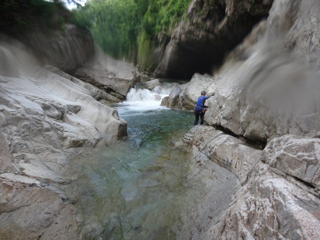 癒しゾーンの後、大プールとなっているゴルジュ入口に着く。