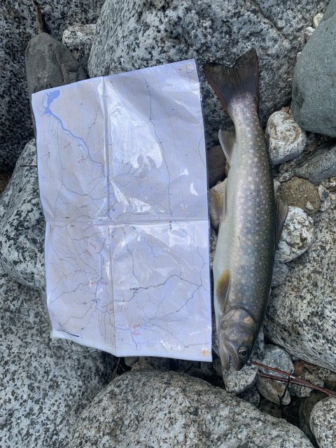 さっき出会った釣り師のお兄さんがやってきて大きめの岩魚を1匹分けてくれた。ありがく頂戴し、塩焼きで頂いた。