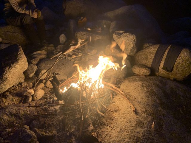 突然のビバークの割には近くで水も得られ、焚き火もでき、快適な幕場で、1日の疲れを癒すことができた。