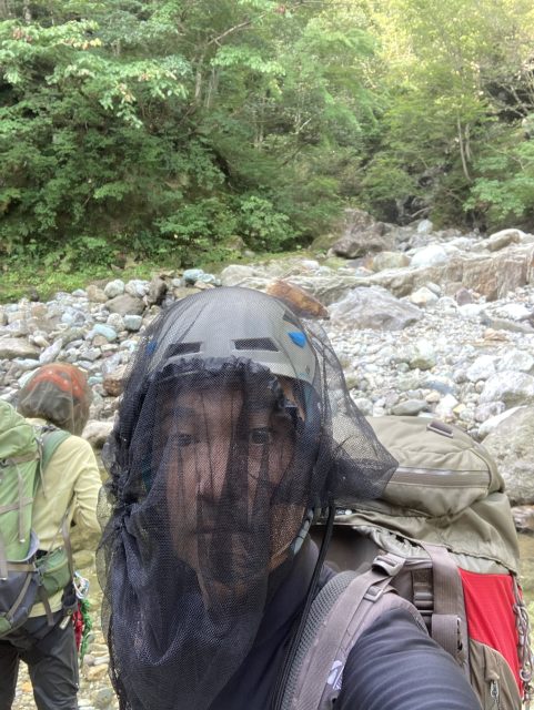 室谷川Co310から入渓後、駒倉沢出会いまではゴーロ歩きです。アブがまとわりつき何か所も刺され、やや辟易としました。このままアブにつきまとわれるのかと嫌気を感じてきた頃にCo296で駒倉沢の出合に到着。支流ではアブがぐっと減り安心しました。また、出合付近でイワナを確認出来ましたが見たのはここだけでした、ちょっと寂しかったです。暫く単純なゴーロ歩きですがCo400頃から段々と両岸が狭まり沢に変化が表れてきます。水の色は透明感のある緑色で、キリッと冷たそうな見た目とは裏腹に相変わらず水は温かったです。