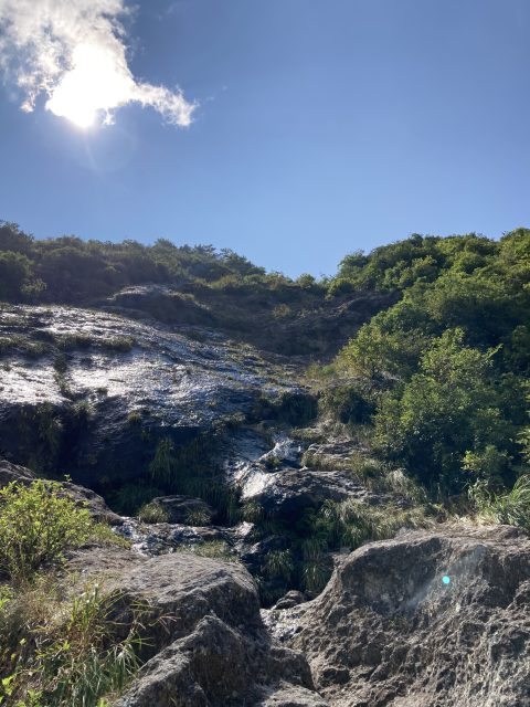 あとは林道まで枝沢の確認や渓相を愛でながらのんびり沢歩きです。左から枝沢が出合うCo295を過ぎると左上方に林道が見えてきたのでCo290辺りで林道に這い上がりました。ここからデポ地までは約40分の林道歩き。沢から離れ暑かったですが整地された道は歩きやすく、今回の旅も終わりが近いなと思ったのでした。13:40にデポ地に戻り終了となりました。