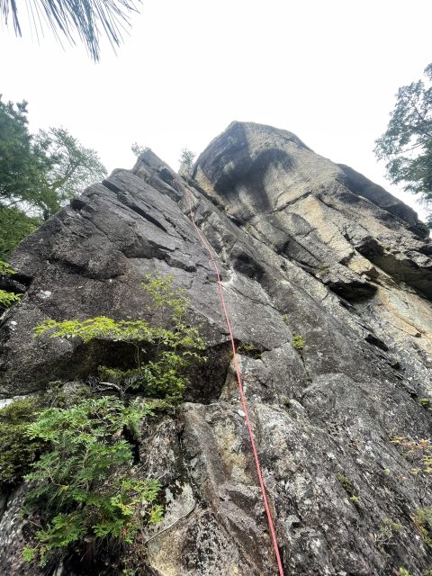 少しグレードアップ。しかも天気がいまいちで岩がしめっていた・・・今回も、つるべで私からスタート。私にとって1p目が一番難しかった。