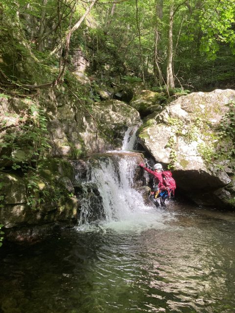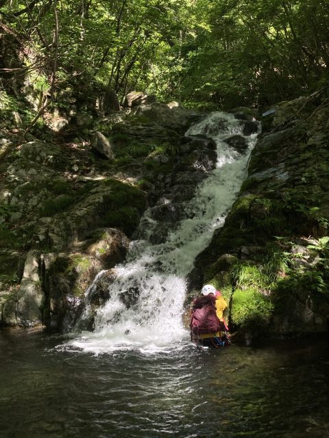 登れる小滝が多いです。でも釜がどれも深いので泳いで取り付くかへつるかで今回はなるべく水と戯れながら小滝は積極的に登って楽しみました。釜のない滝もCS滝などでどれもボルダーチックに登ります。見栄えのよい大滝もいくつかあるので飽きさせない沢でした。