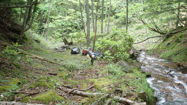 幕営地にまた戻ってくるので不要な荷物はデポしていきました。