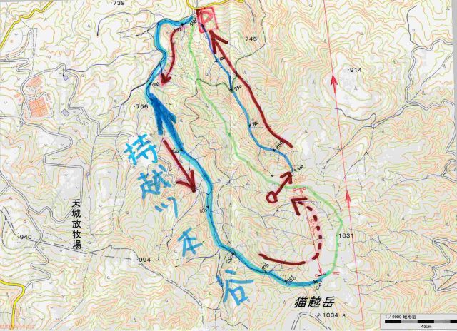 昨日の河原小屋沢に続いて、今日は猫越岳から北流する持越川本谷だ。「はたして、滝場は有るのか‥?」、記録がヒットしなかったので、気掛かりで確かめに来たのだ。