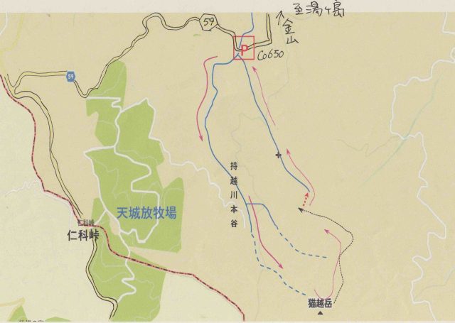 昨夜は道の駅「天城越え」でテント泊。今朝は湯ヶ島のコンビニまで降りて朝食。入渓までのルートは湯ヶ島から持越川と並走する県道59号線で持越金山跡を目指す。