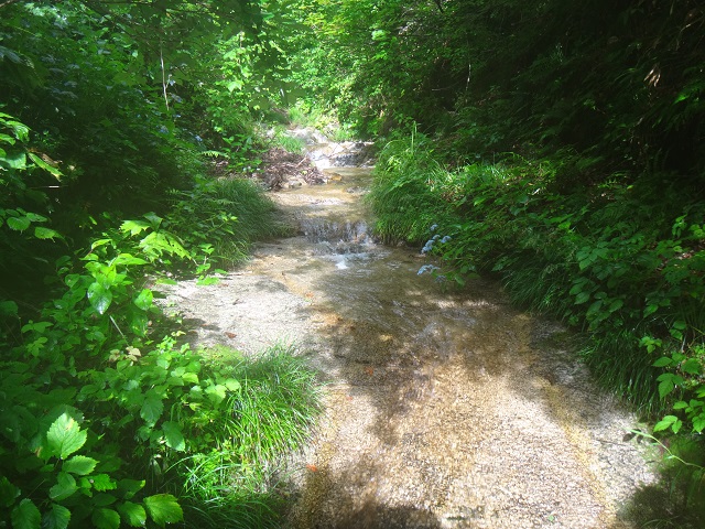林道ゲートP(7:08)-ヒナタグラ出合(7:25-29)-1015m二俣(10:33-40)-1100m二俣(11:24)-8m滝(11:30)-8m滝下に戻る(12:16)-1100m二俣(12:20-40)-1160m付近左岸枝沢(13:09)-左岸尾根鞍部(13:45-52)-林道(16:17)-P(16:28)