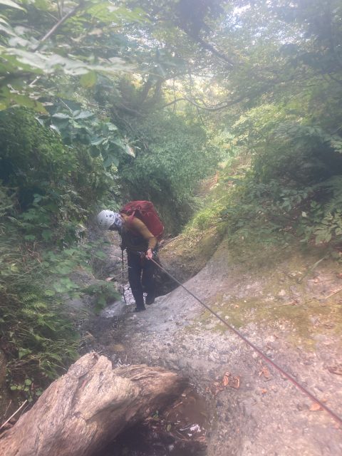 石田リーダーが突破してロープを渡してくれたのですが、ロープをなかなか手繰り寄せることができず時間がかかりました。