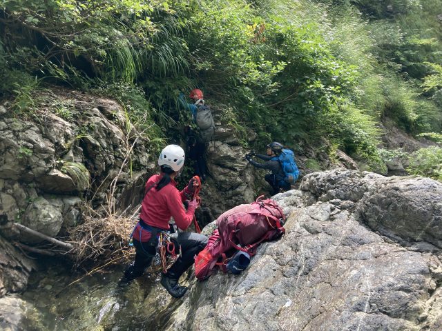 谷川温泉P(5:37)ーヒツゴー沢出合(7:15)-昼食(12:57-13:09)-㏇1300脱渓(15:25)-中ゴー尾根(18:10)-ヒツゴー沢出合(20:17)-谷川温泉P(22:34)