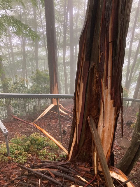 樹皮が剥がされている木がいたるところにあった。剥がされた時期も比較的新しめそうだし、動物の仕業だろうと思って不安になる。ホイッスルを時々鳴らしてみる。