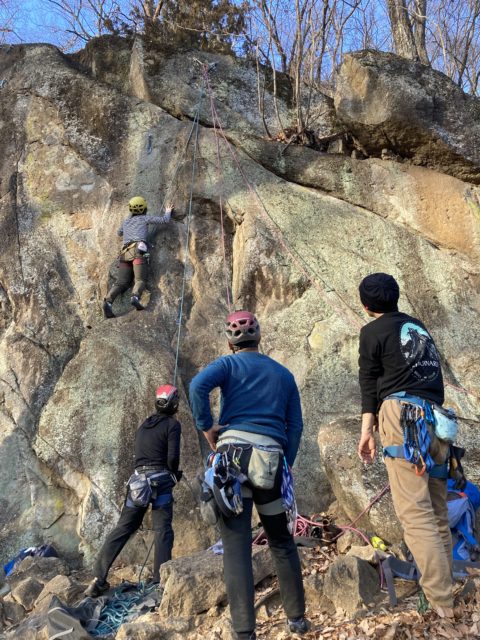今年から岩登りのトレーニングをするようになった。他の会員が頑張っているので触発されたのもあるし、行きたい沢をより安全に遡行したいためでもある。年内にもう一回外岩で練習をしたいと思い本郷さんに声を掛けたところ二つ返事でOKをいただいた。新人の米山さんや他の会員も参加してくれて5名での実施となった。