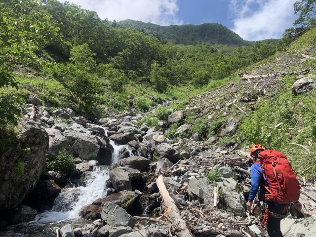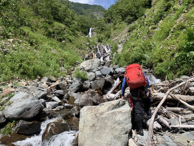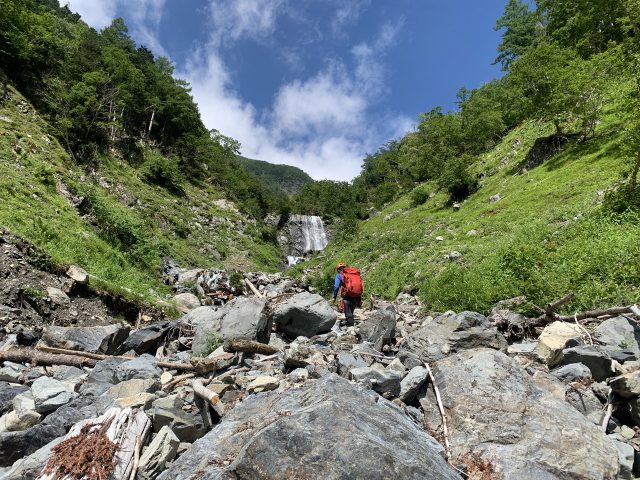 小仙丈沢はバスの関係もあり1泊2日とせざるを得ないが、初日は午後発で十分幕場に到着可能である。2個の大滝以外は急なゴーロ歩きであるが、北岳を眺めながらの高山帯の遡行が楽しめる。