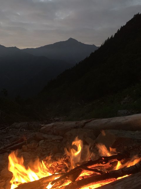 薪は豊富にありすぐ集まり、15:00頃から焚火を始めボーっとする。北岳がばっちり見えて最高のロケーションだ。