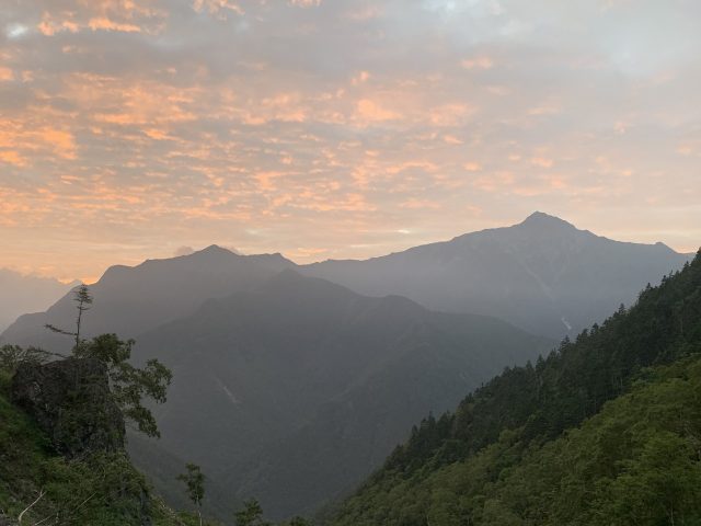 翌朝も北岳が見え良い天気になりそうな予感。7時少し前に出発する。