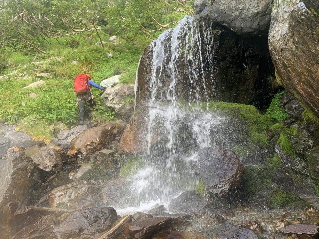 前方に大きな滝が2つほど見えてくるあたりが、当初テン場の予定だったco2000m付近となるが