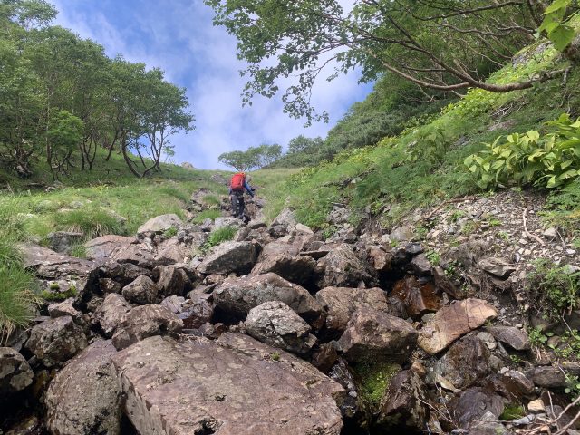 ダケカンバの中のゴーロ帯がしばらく続く。