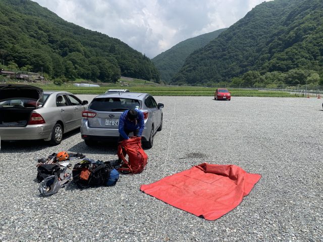 時間的には日帰りが可能そうだが、北沢峠のバス便の最終時刻の関係から一泊二日での実施となる。前夜は道の駅南アルプスむら長谷にて前泊し、6:05発のバス乗車を目標に仙流荘を目指すと、バス停前には既に長蛇の列。時刻表は関係なく、乗車客がさばけるまで市営バスがフル稼働している状態であった。1時間ほど並び6:55にバスにやっと乗車できた。北沢峠に到着した時は広河原行きバスは既に出ていたが、臨時バスを出してもらい野呂川出合に8時頃到着した。バス停にはイワナは捕獲禁止、フライや毛バリによるキャッチ&リリースのみ可との表示があり釣りは早速諦める。炎天下の中身支度を済ませ、林道を行くと40分程度で仙丈ケ岳の右側に小仙丈沢全体が見えてくる。