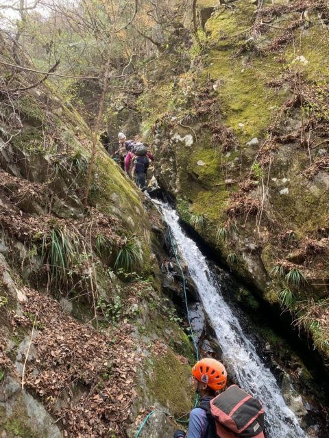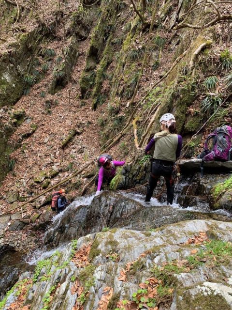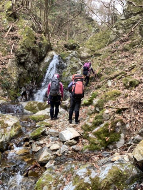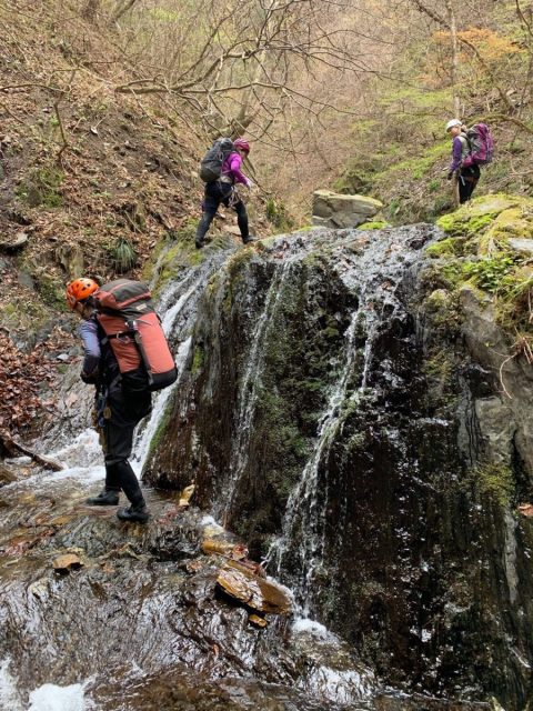 2m,4mと滝が続くが簡単に越えられる。6m滝は右に固定ロープがかかっておりそれを頼りに巻く。