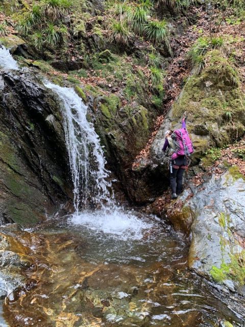 2+2m二段滝を越えてしばらく行くと一番この沢で大きい滝がでてくる10m+2mといったところか。左岸のルンゼ状を登り巻きに入る。