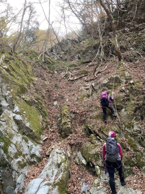左岸のガレ沢に入り支尾根に取り付いて急登にあえぐこと約1時間でco900mの尾根に出る。そこから尾根沿いを踏跡をたどる快適な尾根歩きとなる。