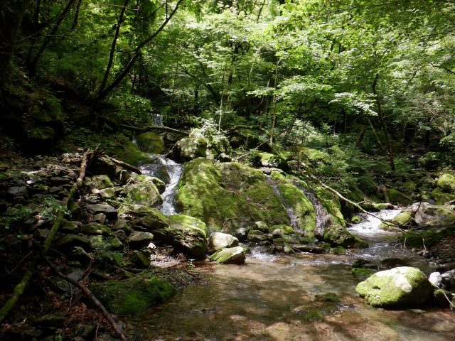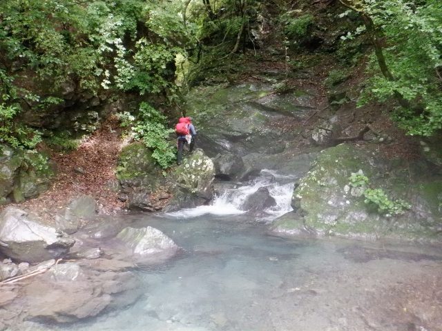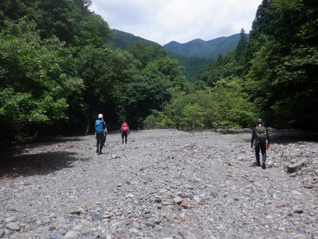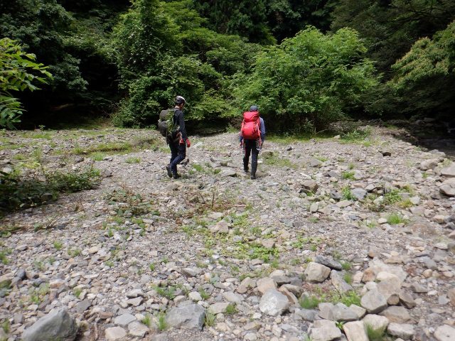 林道終点からそのまま河原に降りました。