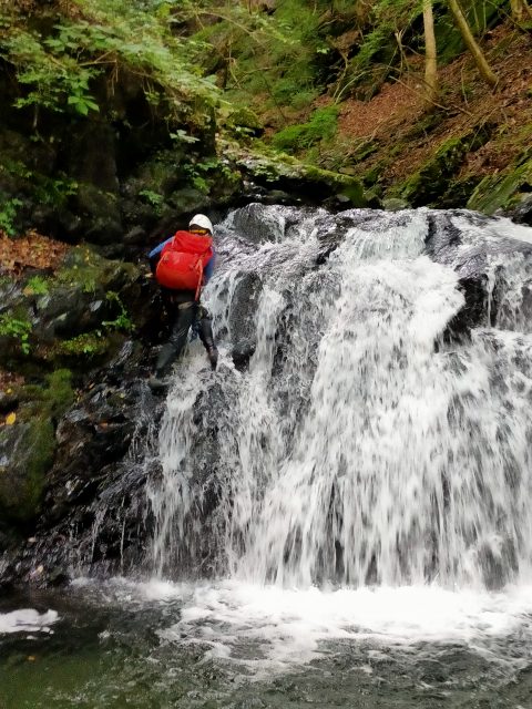 幅広の4m滝、左側から登ります。