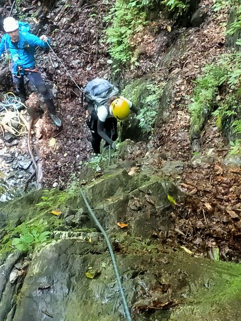 懸垂下降をしてる際に、この写真の場所で岩(50cmX30cm)が目の前で落ちてきました。牛久さんの的確な指示がなければ危なかったです。ありがとうございました。