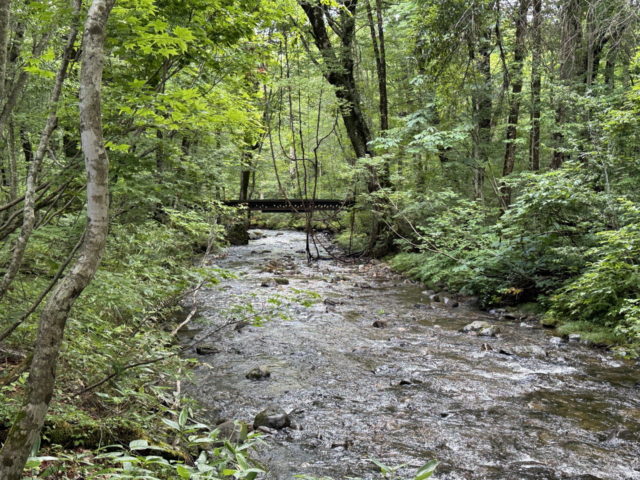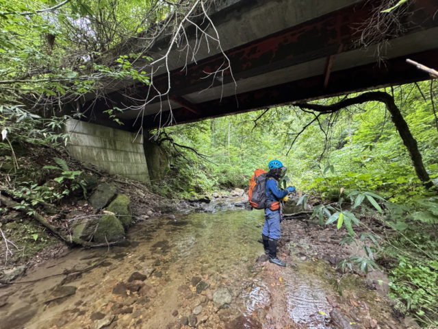 二人ともまだ十分に疲れが抜けていなかったのか寝坊してしまい8時前の出発となる。すぐにヤブ林道の橋に出合う。