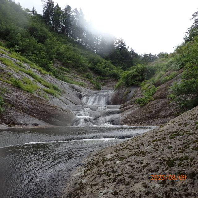 その先はトイ状の流れや3-4mの滝が幾つか続くが、登りにくそうな滝はマタギステップが切ってあり何れも通過は容易で楽しい。