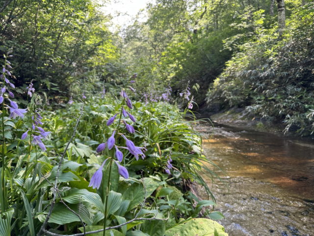 オオバギボウシが紫の花をつけていて彩りを添えていた。