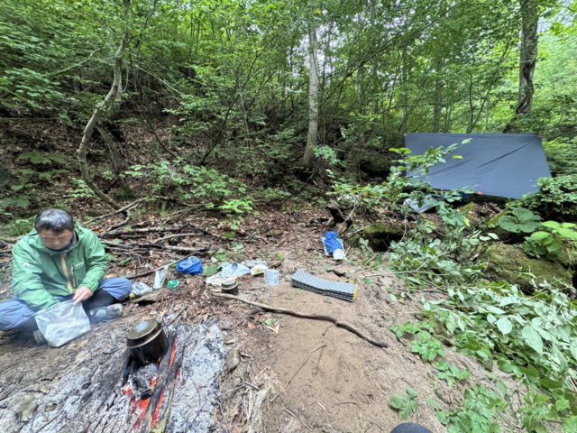 ヤブ林道近くで二人分のスペースを見つけ本日の泊場とした。