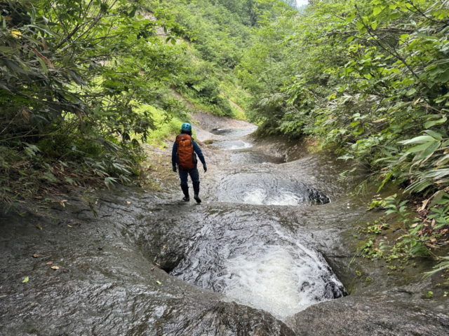 基本舗装路のようなナメ沢を赤水沢左俣目指して遡行していく。
