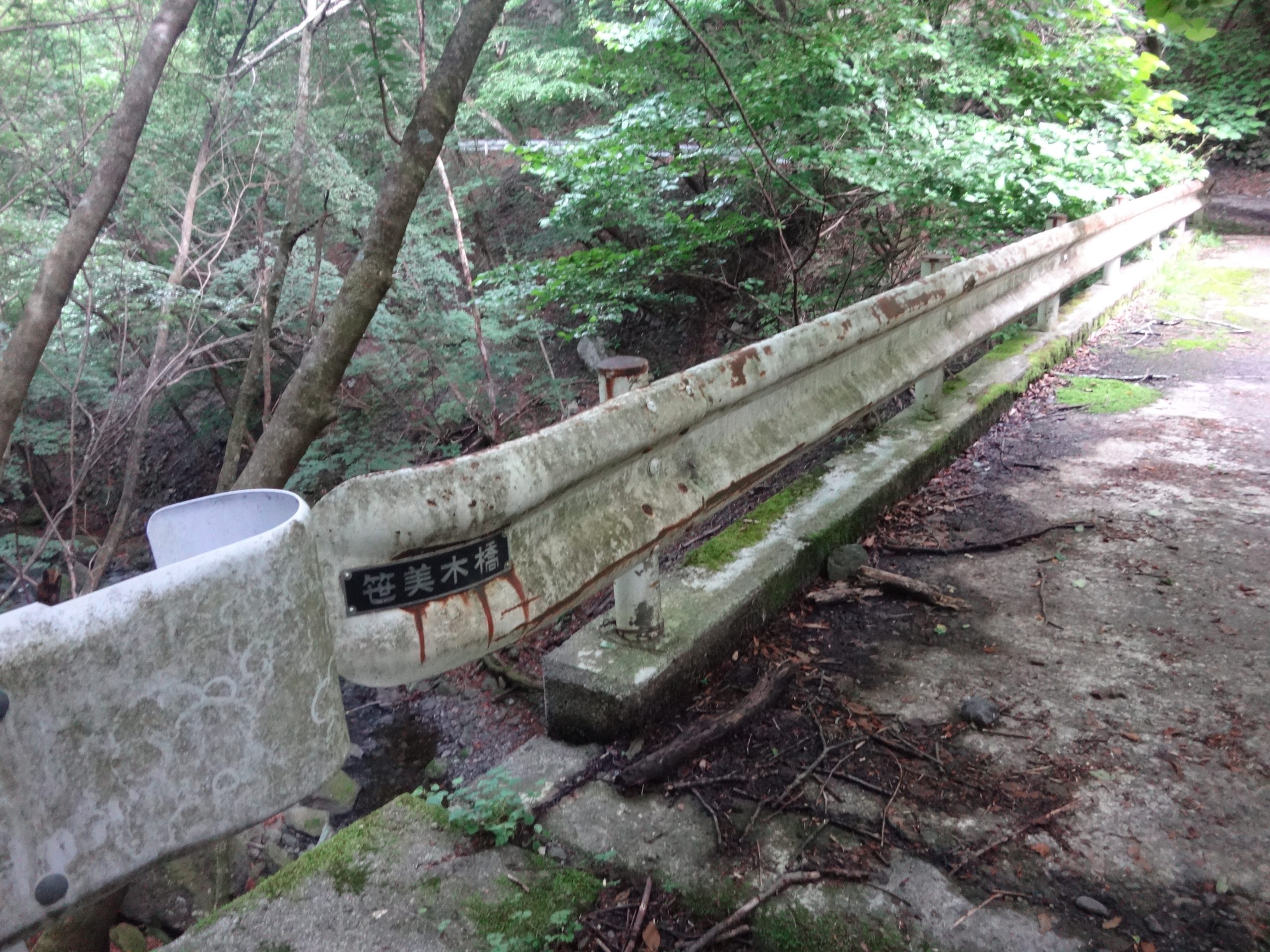 国民宿舎先の庚申山登山口の駐車場に車を停め林道を30分ほど歩き入渓点の笹美木橋まで。ここで支度をし橋を下りてすぐ入渓しました。