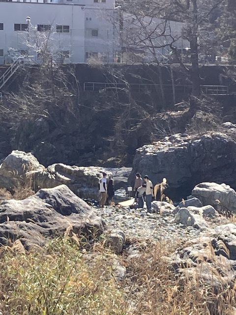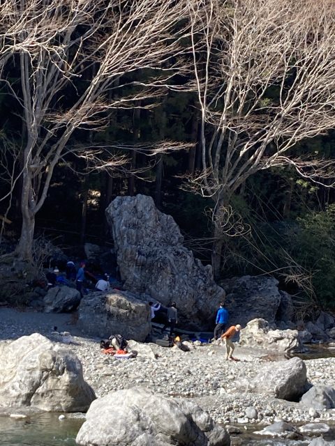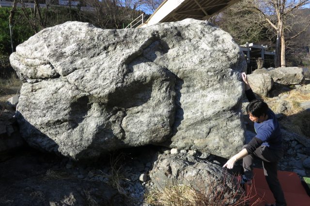他にはこのエリアの「水の詩」にチャレンジしたり「忍者岩」をチラ見し、いつかこの課題に挑戦する日を目標にして午前の部は終了となりました。午後は対岸に渡り、遊歩道伝いに上流に歩きつつ、ガイドブックと照らし合わせながら次回チャレンジできそうな岩を探しながら歩きました。