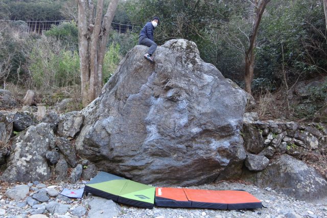 2月になって早くも春一番が吹き、春を感じさせる週末に御岳ボルダリングエリアへトレーニングにやって来ました。今回は会のI先輩と一緒です。一人で黙々と登るのもいいトレーニングになりますが仲間と一緒だと色々相談しながら取り組めるので別の楽しみがあります。