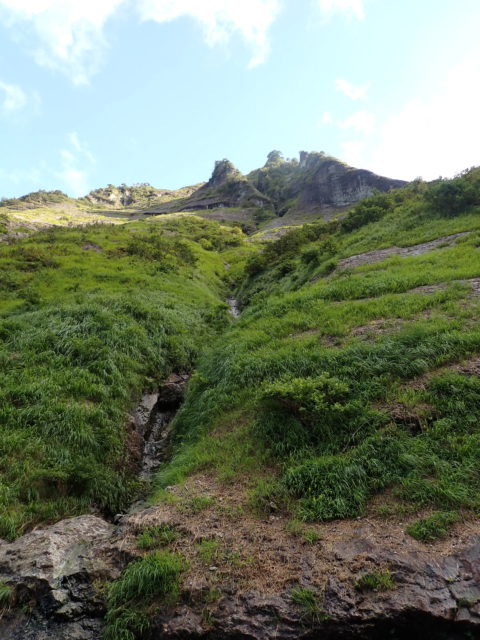 植生が樹木から草付きに やがて岩峰が目立つようになる。
