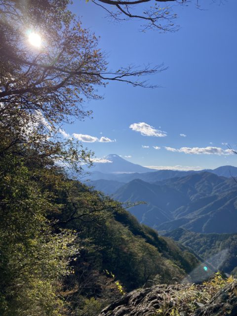 登りきるとリーダーの柔らかい笑顔が迎えてくれた。応える私の顔はおそらく引き攣っていただろう。それでも顔を上げ景色を楽しむくらいの余裕は残っていた。落ち口から対面を見るとそれは晴れやかな富士山がドーンと鎮座していた。もう少し若かったらきっと泣いていたと思う。