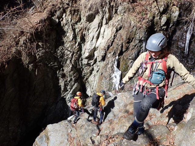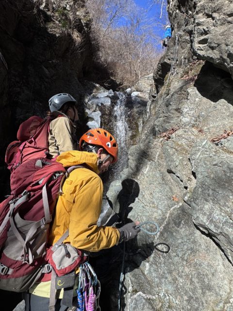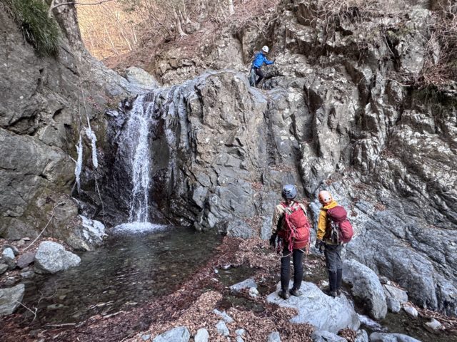 F3、F4、F5の連瀑。ロープを出してフォローの確認などをしながら通過した。巻きルート