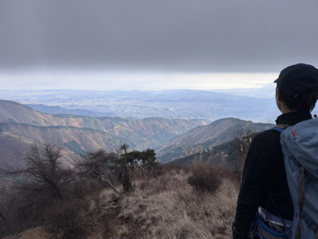 30分程度の登りで源次郎尾根の登山道に出て小休憩後、下山を開始した。源次郎尾根は所々草原状で展望がきき、秦野市街や湘南の海が良く見えて気持ち良く下れた。
