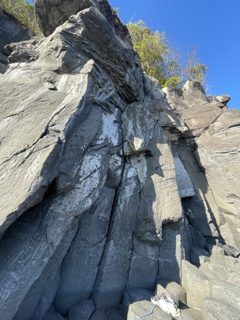 カメノテエリアは11時40分頃に満潮になるらしく午前中は潮位が高く少し風もあり波も高かったので易しめのルート イソカイメンのビレイポイントは濡れないかヒヤヒヤした。今シーズンあと何回かは訪れてクラックの練習をしたいです。