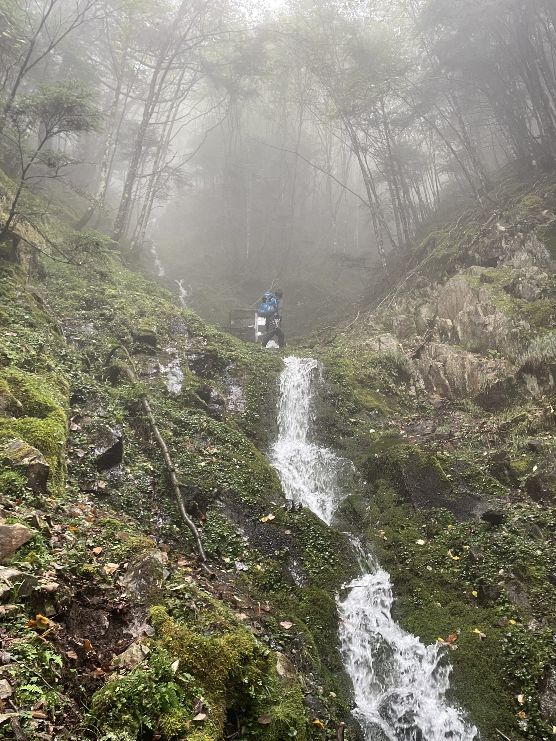 つめは、苔の絨毯でとてもきれいです。登山道まで水がカレていないのでツメも頑張れます。水があるのと、ないのでは気分が違います。